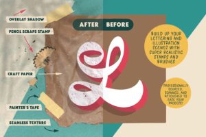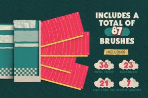 This set contains over 87 brushes that will allow you to build up your lettering and illustration scenes with super realistic stamps and brushes. They’ve been professionally sourced, scanned and retouched to ease your process. Contains seamless canvas brushes to fit any painting style. You will be able to use the textures in any surface size and in any color you want.