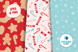 This set includes adorable patterns with gingerbread elements (trees, stockings, hearts, gingermen, mittens, stars and candycanes), christmas candy and cute lettering, as well as stripes, polka dots and snowflakes.