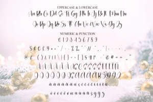 This Christmas font looks like it was written by hand, giving it a warm and personal touch. It features playful letters with a cozy feel, perfect for holiday cards, decorations, or anything festive. The swirls and curves make it cheerful and inviting, bringing the spirit of Christmas to your projects.