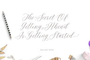 Malibu is a splendid script font that beautifully combines classic calligraphy with a modern feel. This typeface is perfect for titles, signatures, logos, wedding invitations, t-shirts, letterhead, signage, labels, newsletters, posters, badges, etc.