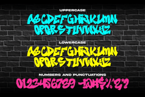Brick Edgie is a bold and energetic graffiti font that embodies the raw spirit of urban art. With its sharp edges and striking design, this font is perfect for projects that demand an edgy, street-inspired look.