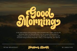 “Neighbor’s Blanket” is a cozy, modern retro font that captures the warmth of nostalgia while offering a contemporary touch. It features rounded edges and playful curves, making it perfect for designs that aim to evoke comfort and familiarity. Ideal for branding, invitations, and various creative projects, this font combines a friendly aesthetic with legibility, making it a delightful choice for any design needing a touch of warmth and charm.