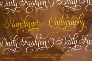 Masterline Calligraphy font is a modern calligraphy design, including Regular. This font is casual and beautiful with swashes. It can be used for various purposes, such as logos, product packaging, wedding invitations, branding, headlines, signage, labels, signatures, book covers, posters, quotes, and more.