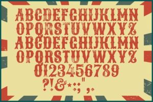 Tags: Carnival Font, Circus Font, Clownish Font, Cowboy Font, Distressed Font, Grunge Font, Letterpress Font, Old West Font, Retro Font, Rustic Font, Typewriter Font, Vintage Font, Western Font, Worn Font