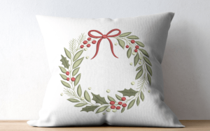This elegant Christmas Wreath Embroidery Design features a soft satin bow, lush holly leaves, red berries, and greenery — perfect for adding a touch of timeless Christmas charm to your projects.