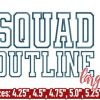 Squad Applique Large is a bold, narrow varsity-style applique font designed for athletic and team-themed projects. It includes uppercase letters A–Z and numbers 0–9, making it perfect for names, jersey numbers, and school spirit designs. The set comes in four sizes to suit a variety of placements, from sweatshirts to bags.