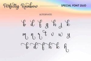Perfectly Rainbow consists of two fonts designed to complement each other perfectly. Together or apart, these fonts are ideal for adding a chic and cheery touch to your crafts. This font is PUA encoded which means you can access all glyphs and swashes with ease!