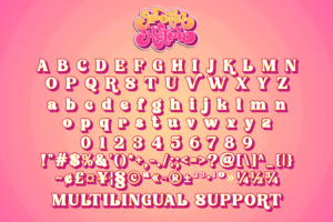This font comes in a three-layer system: a vibrant Regular layer, a clean white Outline for contrast, and a bold Extrude that adds a 3D shadow effect. The layered setup makes it easy to create eye-catching, customizable designs with strong visual appeal.