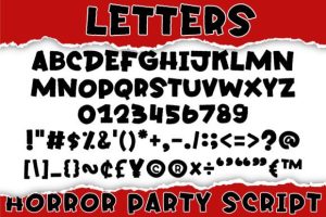 Horror Party is a spine-chilling Halloween display font designed to send shivers down your spine. With a ghoulish twist on traditional lettering, this font adds a touch of eerie enchantment to your designs. Perfect for t-shirt designs, party invitations, and all things spooky, “Horror Party” brings the thrill of the macabre to your creative projects. Unleash your dark side and let this font make a haunting impression!