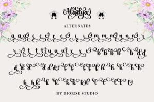 Aladya is an elegant and flowing handwritten font. It features varied baselines, smooth lines, gorgeous glyphs, and stunning alternatives. It maintains a classy calligraphic influence while feeling contemporary and fresh. Fall in love with this font and take your projects to the highest level!