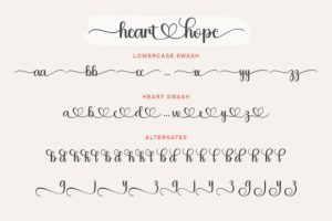 Whether you’re crafting a wedding masterpiece or building a brand that speaks volumes about love and connection, the Heart Hope Font is your artistic. Imbue your projects with the essence of romance and refinement—choose Heart Hope Font for a truly captivating design experience!