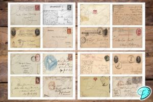(These include 24 different handwritten letters and 16 envelope fronts and postcards. All these are found vintage imagery, digitally enhanced)