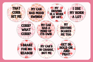 Add a touch of humor to your car with our set of 10 funny driving sayings car coaster pink coquette designs! These cute and witty designs are perfect for keeping your cup holders clean and bringing a smile to your face on every drive. Each design comes in a high-quality PNG format, ready for you to print and enjoy. Whether you’re a daily commuter or a weekend road tripper, these coasters are the perfect accessory to brighten up your ride.