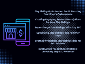 Our offering encompasses 130 prompts spanning many diverse categories, addressing a wide array of crucial subjects. This includes selecting a lucrative niche, conducting market analysis, shaping a distinctive brand identity, constructing an aesthetically pleasing and user-friendly Etsy storefront, composing compelling product descriptions, setting competitive price points, generating high-quality product imagery, devising an effective social media strategy, mastering Etsy SEO, configuring shipping and handling policies, delivering exceptional customer service, strategizing pricing, creating a mailing list, diversifying your product range, fostering collaborations with fellow Etsy vendors, outlining a comprehensive business plan, scrutinizing your shop’s data and metrics, optimizing time management and productivity, facilitating the growth of your Etsy enterprise, and preparing for potential challenges within the dynamic Etsy marketplace.