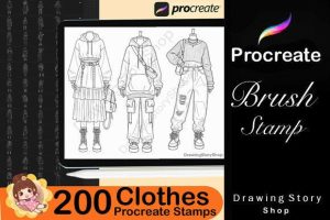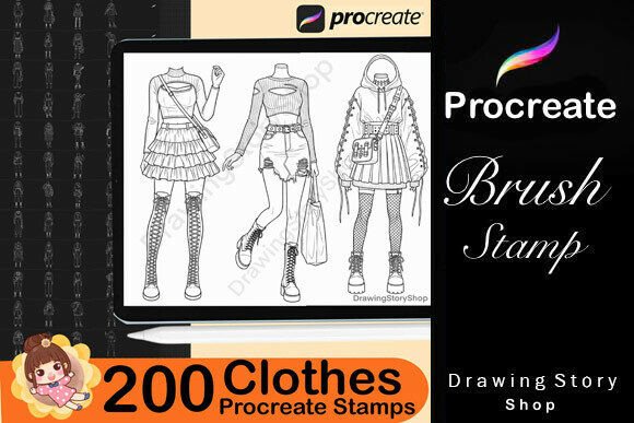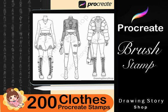 200 Clothing stamp brushes for Procreate, Procreate Clothing fashion stamp, procreate brushes, procreate clothes, Procreate outfit stamp brushes