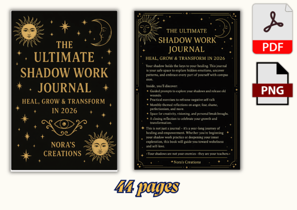 Your shadow holds the keys to your healing 🌙 This 6×9 inch guided journal is designed to help you uncover hidden emotions, release old patterns, and step into your most authentic self. With over 44 pages of deep reflection prompts, practical exercises, and creative spaces, this isn’t just a journal—it’s a year-long journey of transformation 🌟