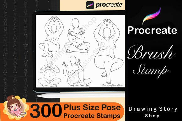 300 Procreate female plus size body. Procreate body pose brushes. Procreate woman body stamps. Procreate women plus size stamp