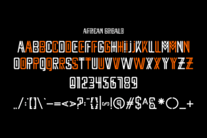 African Gribald is a unique art deco font with a tribal feel. It combines bold, geometric shapes with traditional African patterns, creating a stylish and cultural look. Perfect for posters, logos, or any creative project that needs a mix of modern and tribal design.