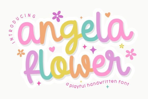 Immerse yourself in the cozy glow and enchantment of Angela Flower, a daring yet spirited handcrafted font that infuses your creations with a delightful spark. With its vivacious cursive mannerism, it makes a matchless fit for logos, social media illustrations, and artisan projects, bestowing a singular, imaginative touch to your craftsmanship. Regardless of your platform, be it Procreate, Cricut, or Canva, Angela Flower stands as your first choice for producing colorful, captivating typography.