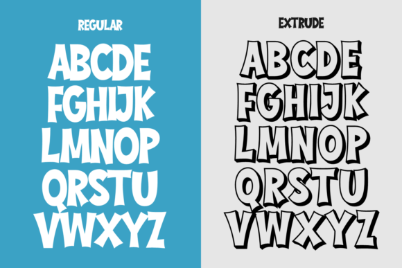 Extrude – layered with a bold outline and depth effect, designed to create striking dimensional titles.