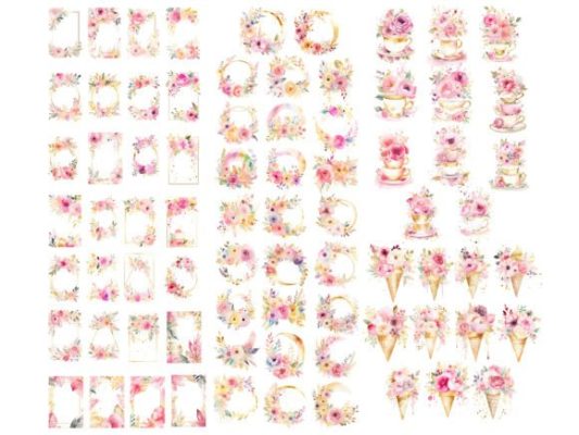 Introducing our enchanting Watercolor Nursery Bundle, a delightful collection of Baby Girl-themed watercolor clipart perfect for adding a whimsical atmosphere to any creative project. This delightful collection of watercolor clipart features an irresistible array of princesses, princess castle, cute cats, bunnies, teddy bears, dinos, fairies, flamingos, birthday balloons, cupcakes and birthday cakes, bunting banners, cute star, sun and clouds, floral tea cups and ice cream, pink watercolor flowers and floral frames, all adorned with magical touches like boho rainbows and unicorns. Get ready to let your creativity soar as you bring these captivating designs to life in sublimation projects, birthday invitations, baby shower invitations, and nursery decor.