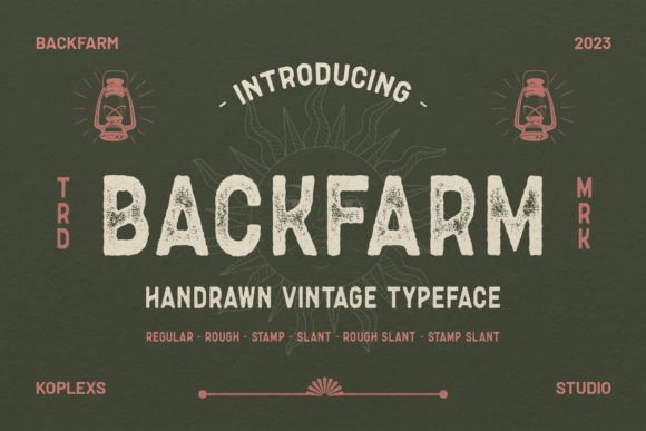 Backfarm fonts is the epitome of vintage charm and hand-drawn authenticity. This versatile font family offers a range of styles to suit your design needs, including Backfarm Regular for clean, classic appeal, Backfarm Rough for a rustic touch, and Backfarm Stamp for an edgy, stamped effect. Need a slanted variation? No problem! Backfarm has you covered with Backfarm Slant, Backfarm Rough Slant, and Backfarm Stamp Slant. Whether you’re designing a rustic farmstead logo, a vintage-inspired poster, or anything in between, Backfarm brings character and uniqueness to your projects. Head to koplexsstudio now to elevate your designs with the timeless charm of Backfarm fonts. 🎨🔤✨