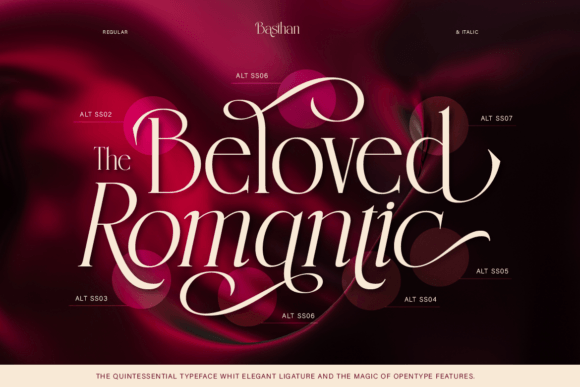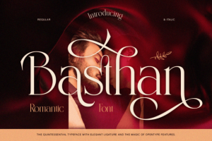 Introducing, Basthan, a mesmerizing the beauty of serif font that has elegance and luxury aura. Inspired by vintage typography, with aesthetic alternates and ligatures make it more dramatic. The refined curves and italic style create a timeless look and intrigue. Including multilingual support, make it suitable for international project design. Perfect for luxurious branding, fashion labels, beauty product, editorial design, wedding invitation, jewelry, headlines and any design project that need touch of luxury and dramatic.