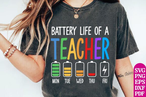 Battery Life Of A Teacher Svg Png, Funny SVG PNG Shirt.