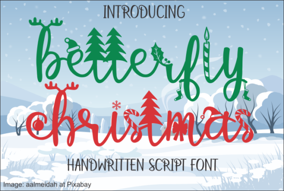 Betterfly Christmas is a fun decorative font with a Christmas holiday theme. Make your designs look more real and attractive, use them together with your creative ideas so that they will produce amazing designs!