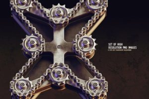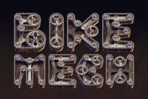 Hello! Presenting a steampunk-style font set – Bike Mech. It’s a 3d rendered high-quality typeface made of bike gears and chains. First of all it’s a color bitmap OpenType-SVG font that can be used as a usual OTF font. Also, a set of full-resolution PNG files with transparent backgrounds is included (The average resolution is 12 megapixels). Considering that only English language and basic punctuation are supported, please check out the screenshot with all available characters.