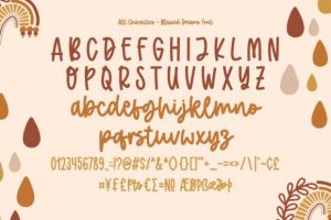 Blessed Dreams is a visually attractive display font with soft, gentle nuances caused by the swinging end of the wipes and curves. Each of the letters is interconnected as in the cursive font and the proportions are relatively similar for a legibility reason.