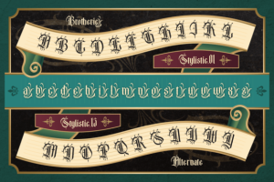 Brotheric brings a majestic and timeless feel, perfect for designs that aim for a “luxury meets vintage” aesthetic. It belongs to the Gothic family, but with a refined tone that makes it versatile for many design styles.