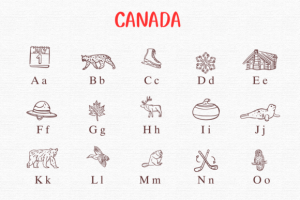 “Canada Dingbat Font: A playful collection of symbols capturing the essence of Canada. From majestic wildlife like bears and moose to iconic maple leaves and hockey sticks, this font adds a touch of Canadian charm to any project.”