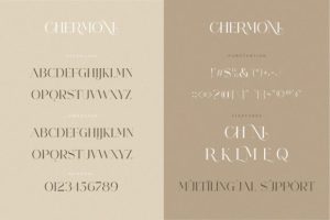 Introducing the new CHERMONI ligature serif font!!! CHERMONI offers beautiful typographical harmony for a variety of design projects. This font is perfect for elegant & luxury logos, classy editorial designs, women’s magazines, fashion brands, cosmetic brands, fashion promotions, modern advertising design, invitation cards, art quotes, home deco, book titles/covers, special events, tote bags, T-shirts, Advertisements and more.