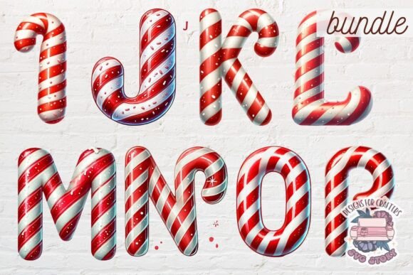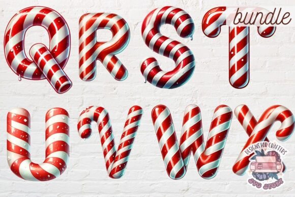 Christmas Candy Cane Alphabet Bundle PNG - Image 6