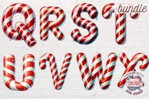 Christmas Candy Cane Alphabet Bundle PNG - Image 5