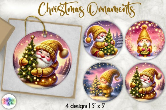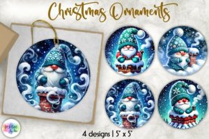 Adorable Christmas ornament designs featuring festive round designs with cute gnomes, Christmas trees, snowmen, lights, and winter scenes. Perfect for sublimation, ornament making, gift tags, stickers, and holiday crafts. High-quality 5×5 inch PNG files with transparent backgrounds included.