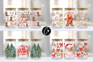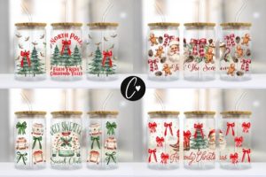 Christmas Libbey Glass Wrap Bundle, Christmas PNG, Christmas Sublimation Design, 16oz Glass Can perfect for your Christmas sublimation crafts! Let’s get Creative!