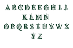The Christmas Magic Star font is an innovative decorative typeface where each character is intricately integrated with a spiraling Christmas tree design adorned with stars. This elegant cut-out style turns every capital letter into a festive monogram, making it an exceptional display font for impactful, seasonal headers and personalized items.