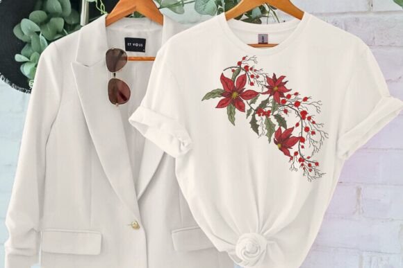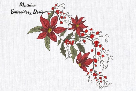 The Poinsettia and Holly Embroidery Design brings festive charm to holiday projects. Featuring poinsettias, holly leaves, and red berries, this design is perfect for enhancing home textiles, holiday apparel, and seasonal decorations. Add a beautiful and classic Christmas touch to your creations with this intricate design.