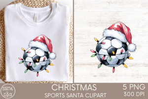 Christmas Sports With Santa Hat PNG, Santa Sports Design, Merry Christmas, Christmas Soccer, Football, Baseball, Softball, Volleyball Png.