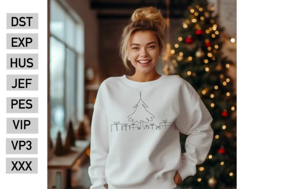 Christmas Tree Line Art. This beautiful embroidery design will make any piece of fabric look more festive! Add it to t-shirts, jackets, bags, skirts, or anything else! This machine embroidery design comes with multiple embroidery file formats and can be used with multiple embroidery machines.