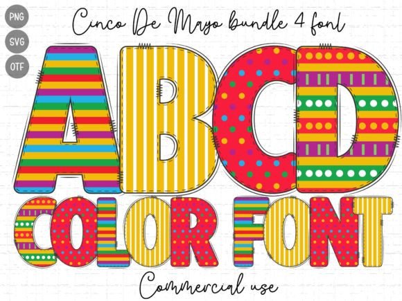 Cinco De Mayo is a joyful and festive color font. These chubby characters are embellished with cute stars and Mexican motifs. Try it on party invitations, Cinco de Mayo projects, posters, cards, fabric prints, and more.