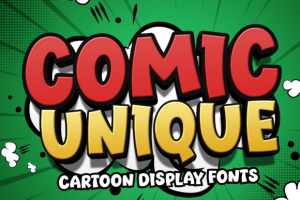 Comic Unique is a cartoon display font. Comic Unique is tailor-made for superhero-themed designs, comic books, movie posters, and any pop culture-related projects. Its dramatic style captures the spirit of adventure and heroism, making it a go-to font for action-packed content.