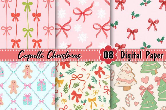 – Coquette Christmas Digital Paper: 8 JPG Digital Images