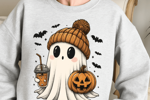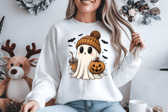 Cute Ghost Halloween PNG | Girly Halloween Shirt PNG | Pumpkin Boo Clipart | Fall Coffee Ghost Design | 300 DPI Transparent File