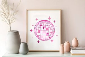 Pink dico balls to realise unique discoball shirt, Cute disco ball stationery, Trendy mirrorball stickers, pink dance hoodie and much more,…