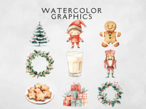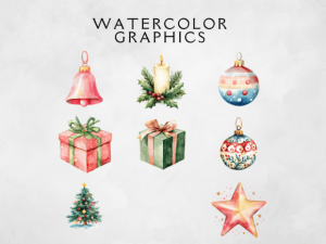 This Cute Watercolor Christmas Clipart Pack includes 26 festive PNGs at 300 DPI with transparent backgrounds. Perfect for Christmas cards, stickers, sublimation, invitations, party printables, and DIY holiday crafts.