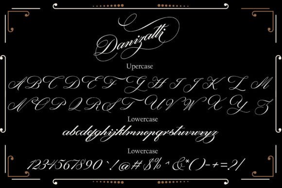 Danizatti is a kind of classic decorative script with a modern twist. This is a display font intended for vintage logos, fashion labels, custom card headers, badges, food packaging designs, and especially wine labels.