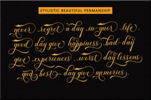 Dayton feels incredibly elegant and flowing. It looks stunning on wedding invitations, thank you cards, quotes, greeting cards, logos, business cards and every other design which needs a handwritten touch. It features a varying baseline, smooth lines, gorgeous glyphs and stunning alternates.